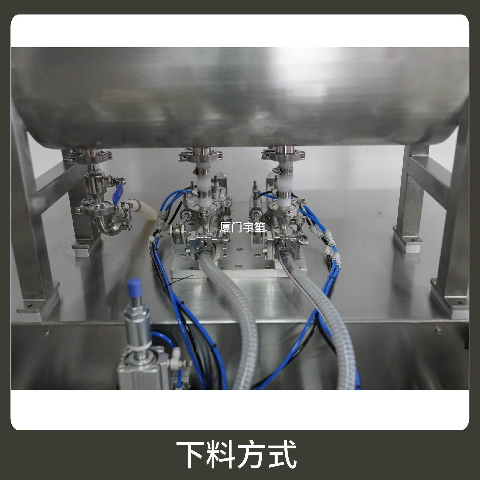 2、成品雙出,包裝流程全自動,無需人工操作。可根據(jù)充填物料的性質(zhì)選配不同的下料結(jié)構(gòu)。